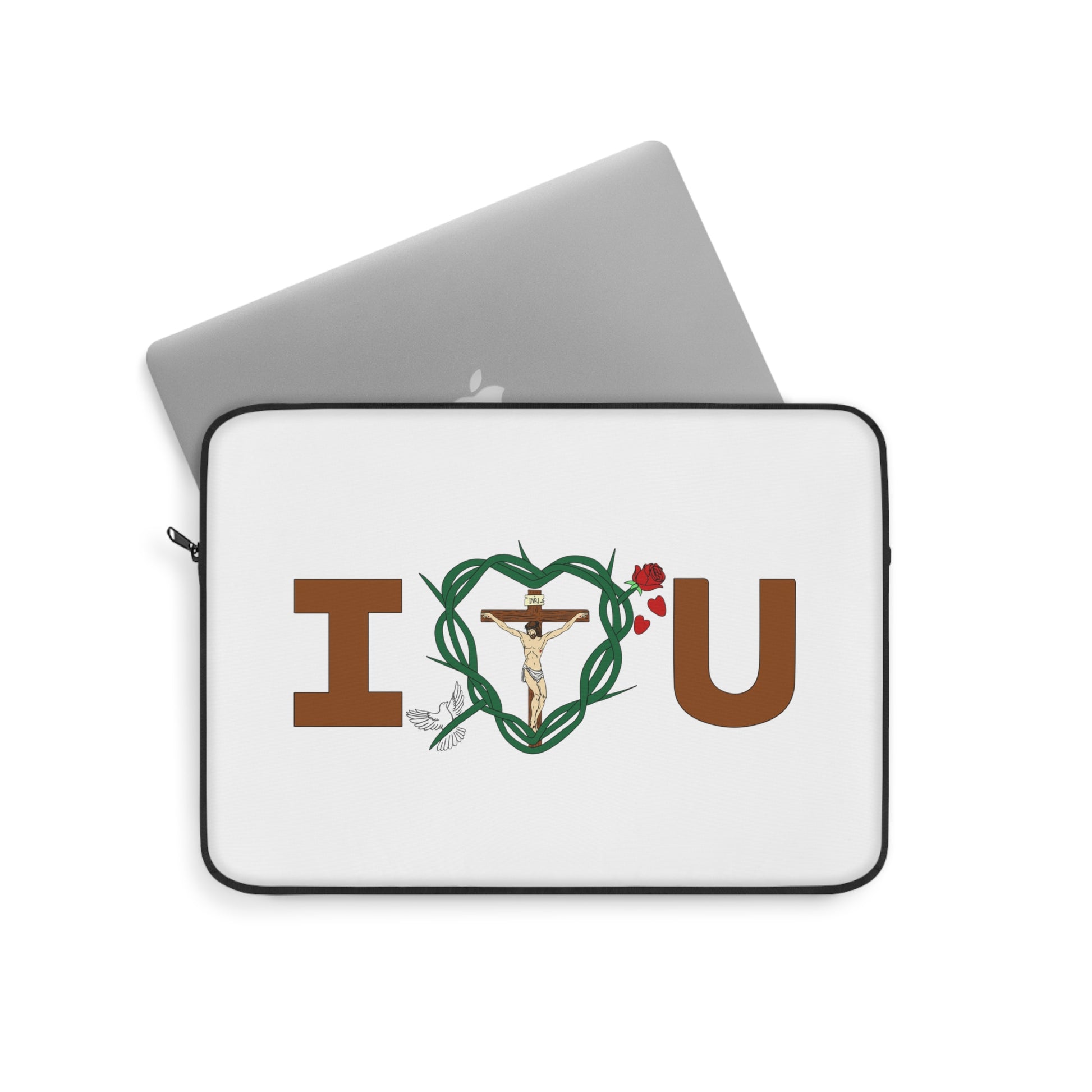 Embrace and feel loved while sharing God's message of love to all and protect your laptop in this laptop sleeve.