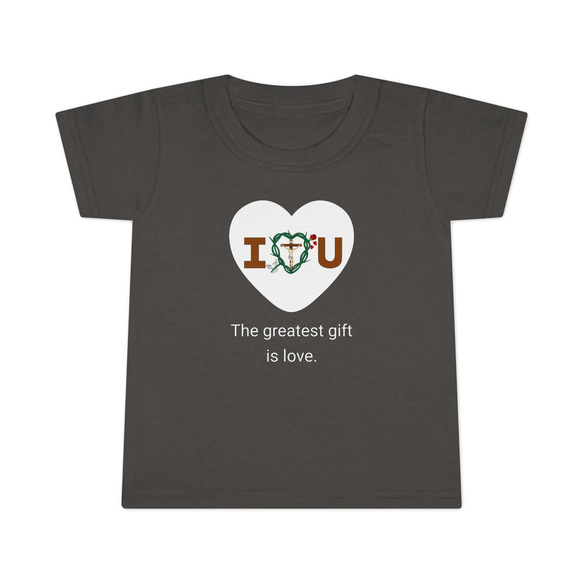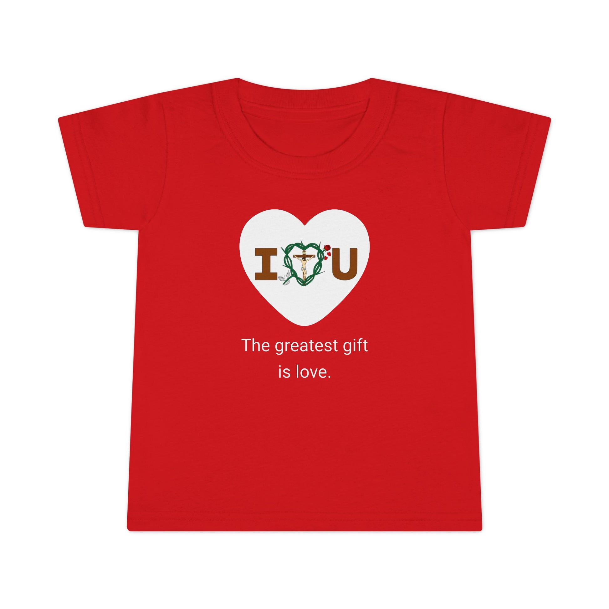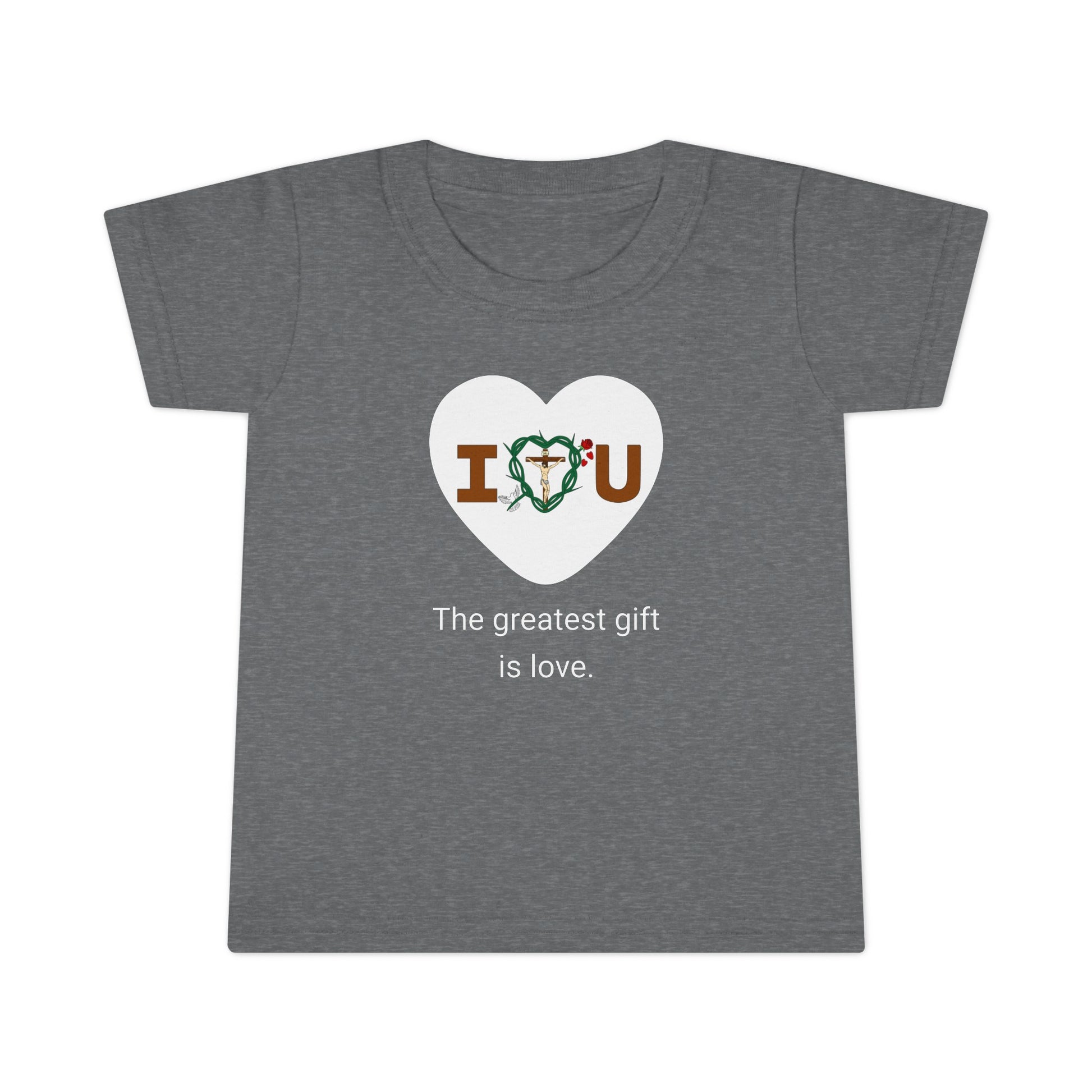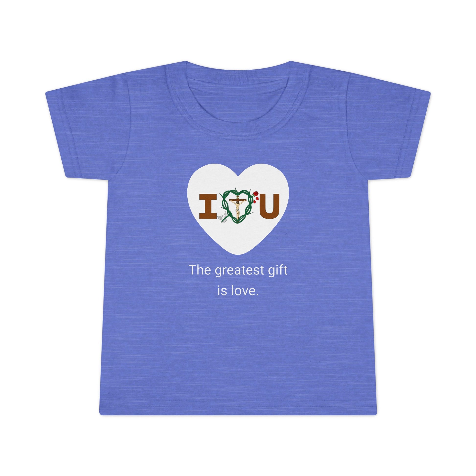 Embrace and feel loved while sharing God's message of love to all wearing this toddler t-shirt.