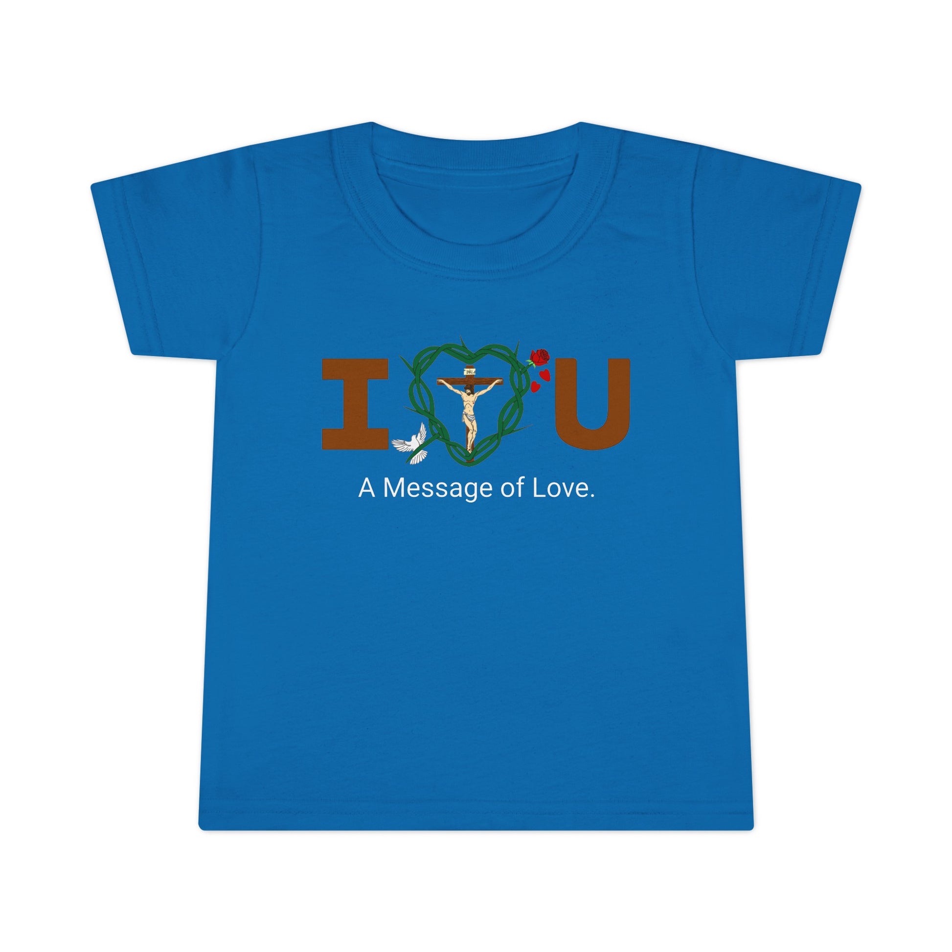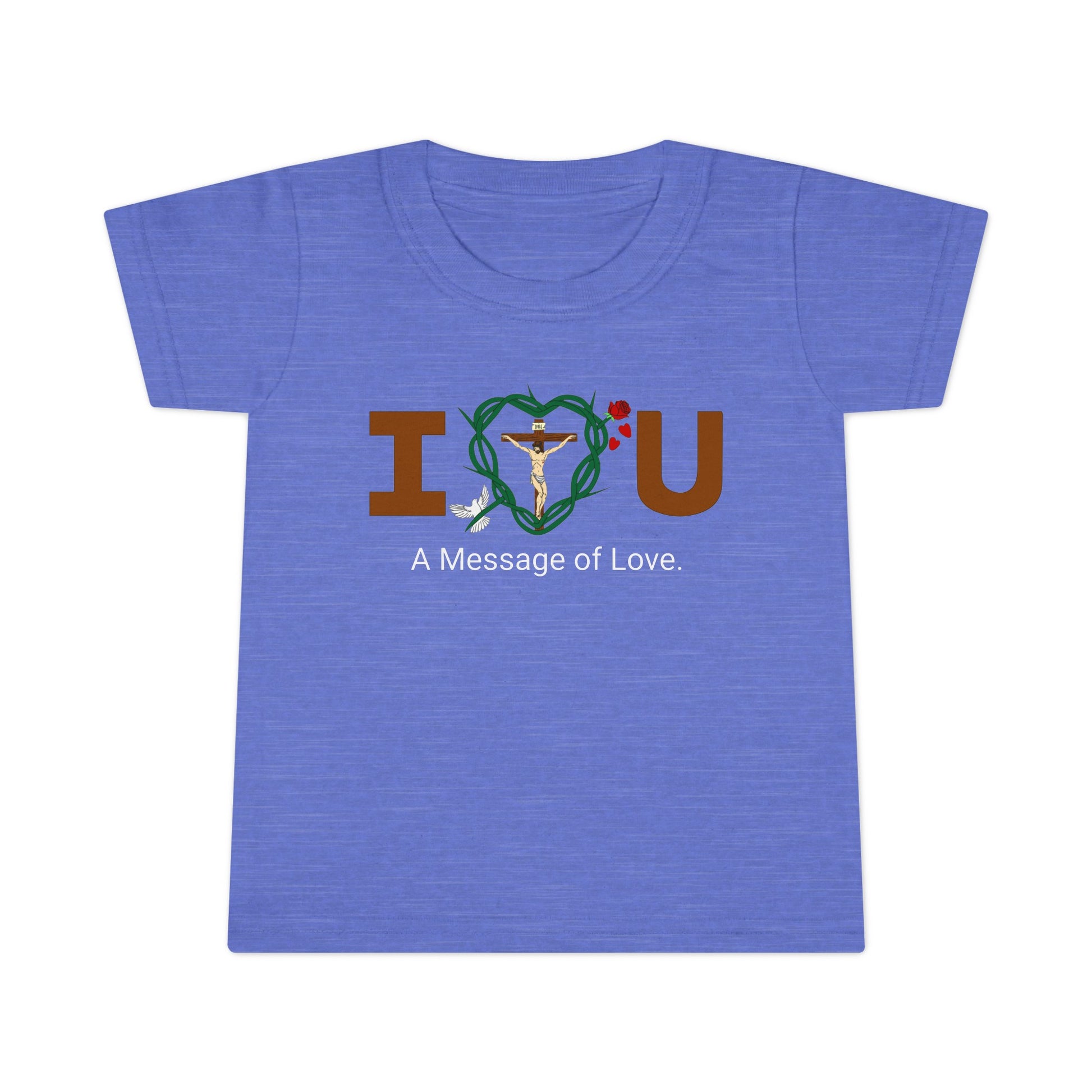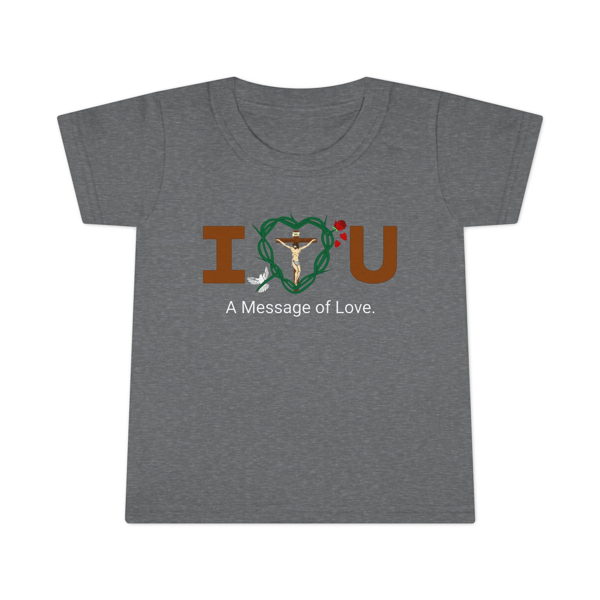 Embrace and feel loved while sharing God's message of love to all in this toddler tee-shirt.