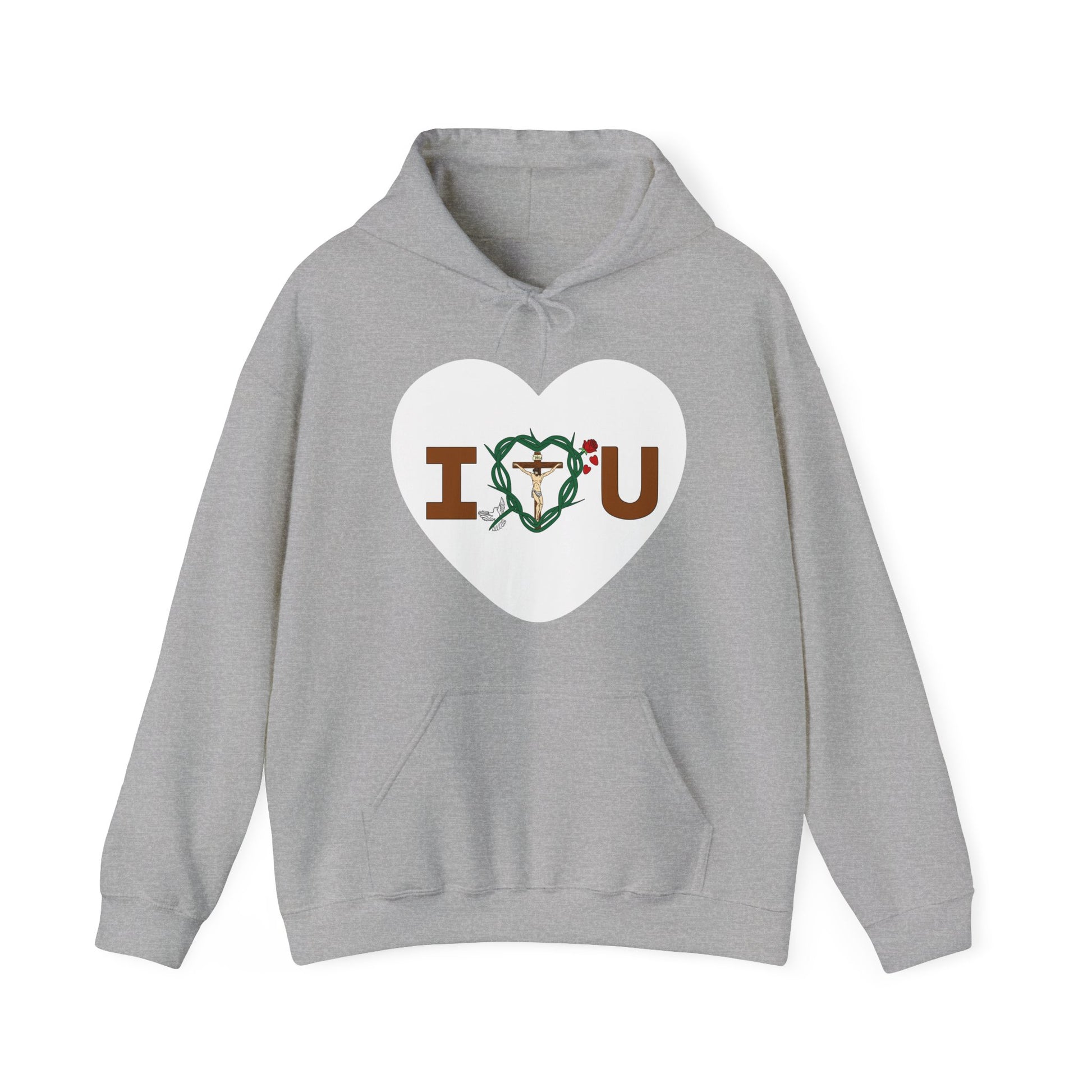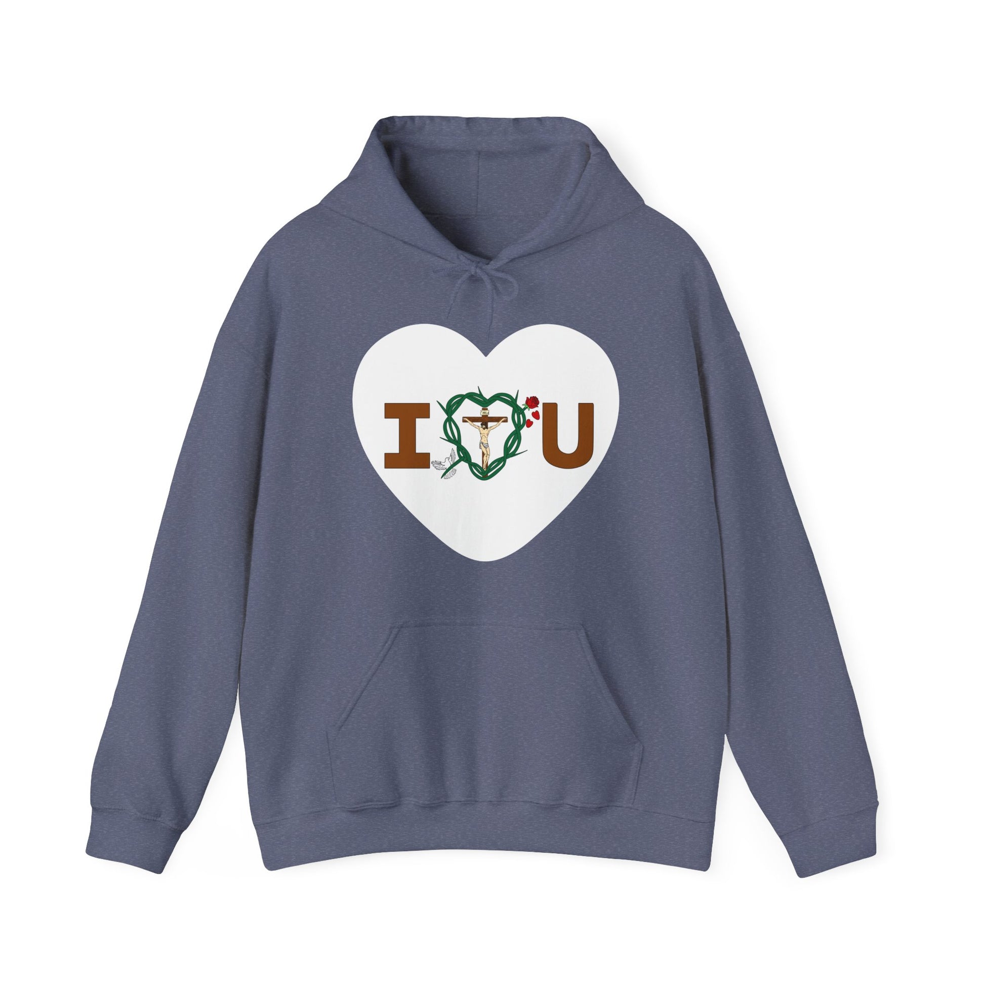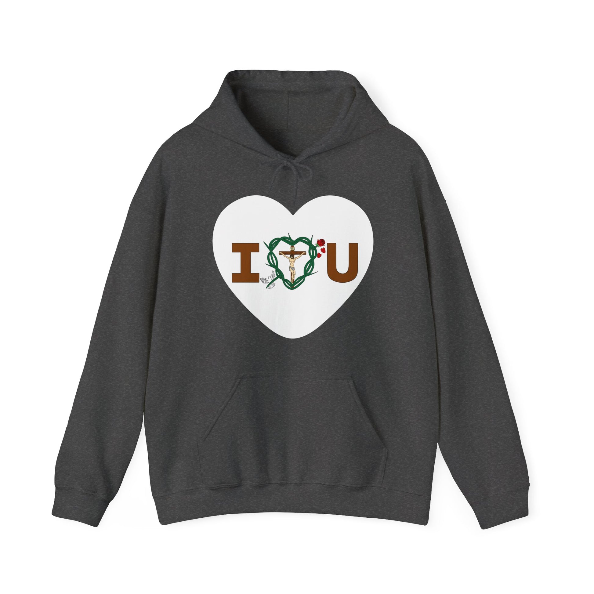 Embrace and feel loved and in sharing God's message of love for all in this warm and compfy hooded sweatshirt. Let it be your lucky shirt.