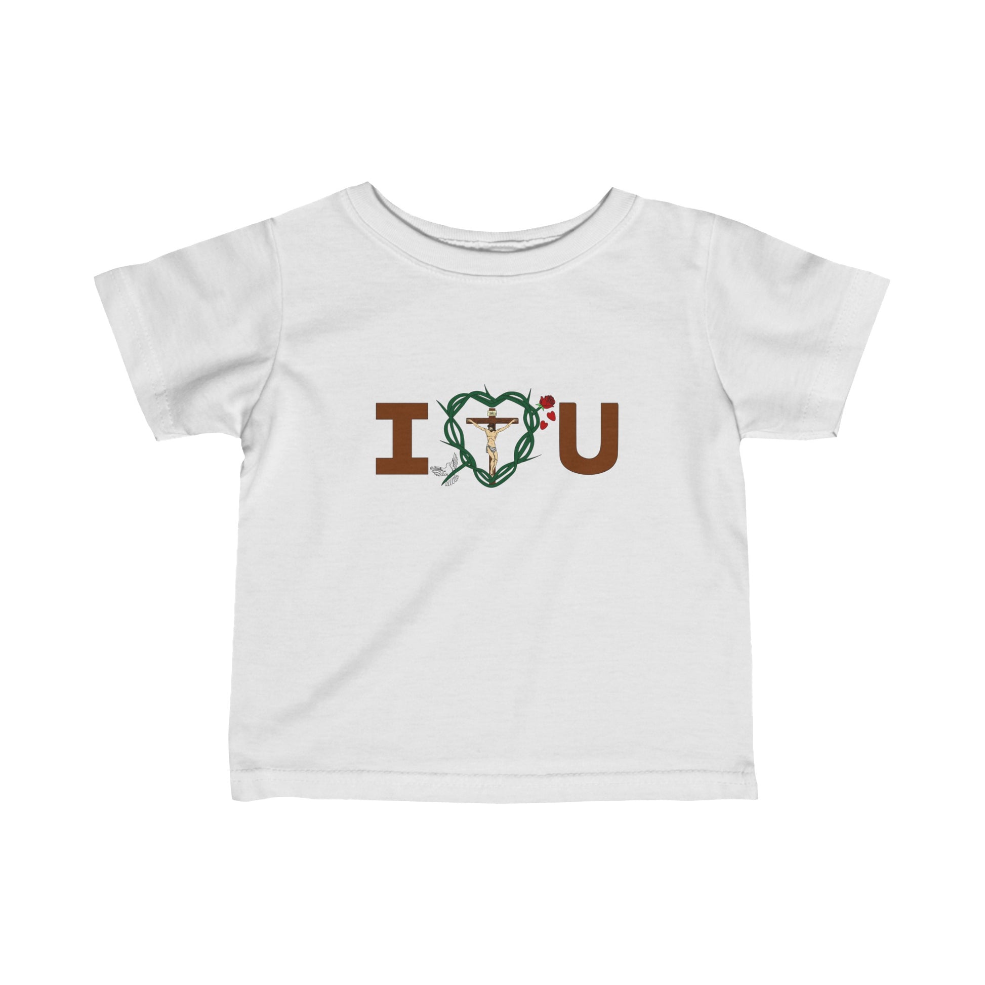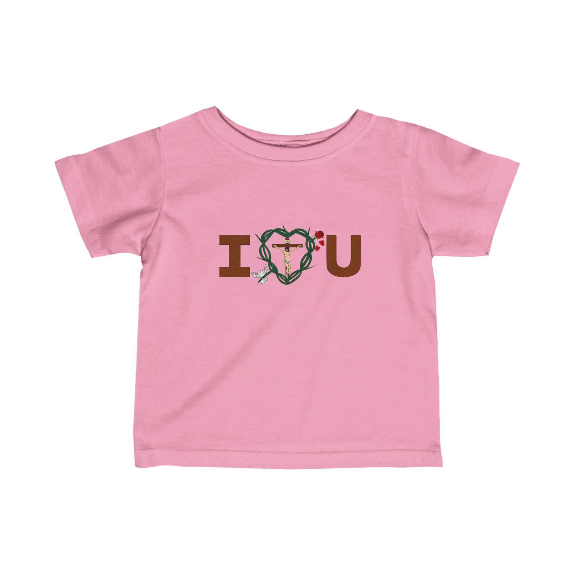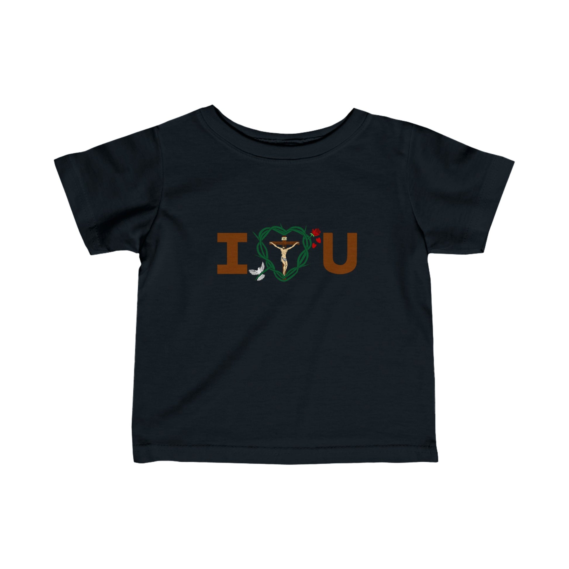 Featured in the design include, God the Father is represented by the I, Jesus Christ, the cross and His crown of thorns shaped as a heart, The Holy Spirit is represented by the bird. The Virgin Mary is represented by the rose, The Blood of Christ is represented falling rose peddles, You and all of God's children is represented by the U.