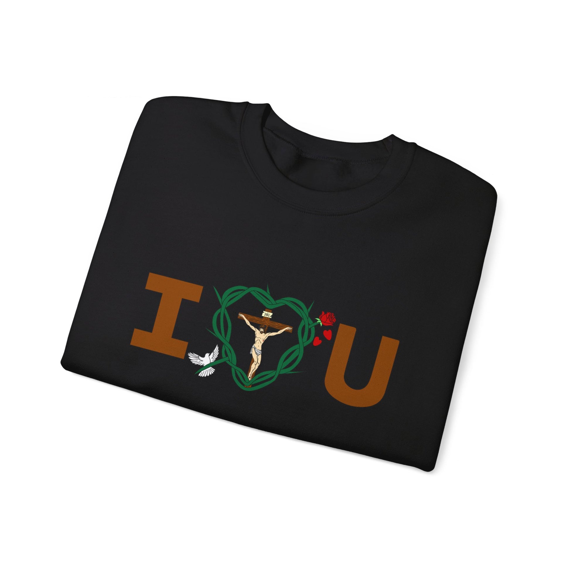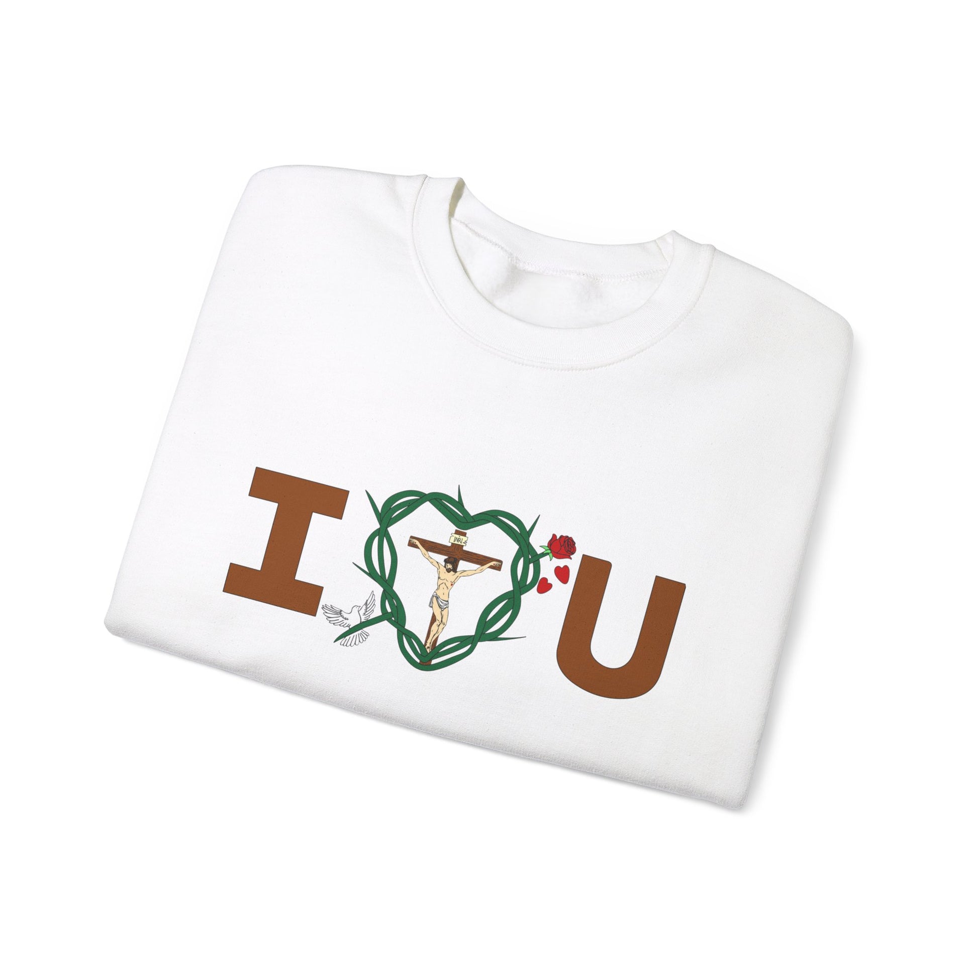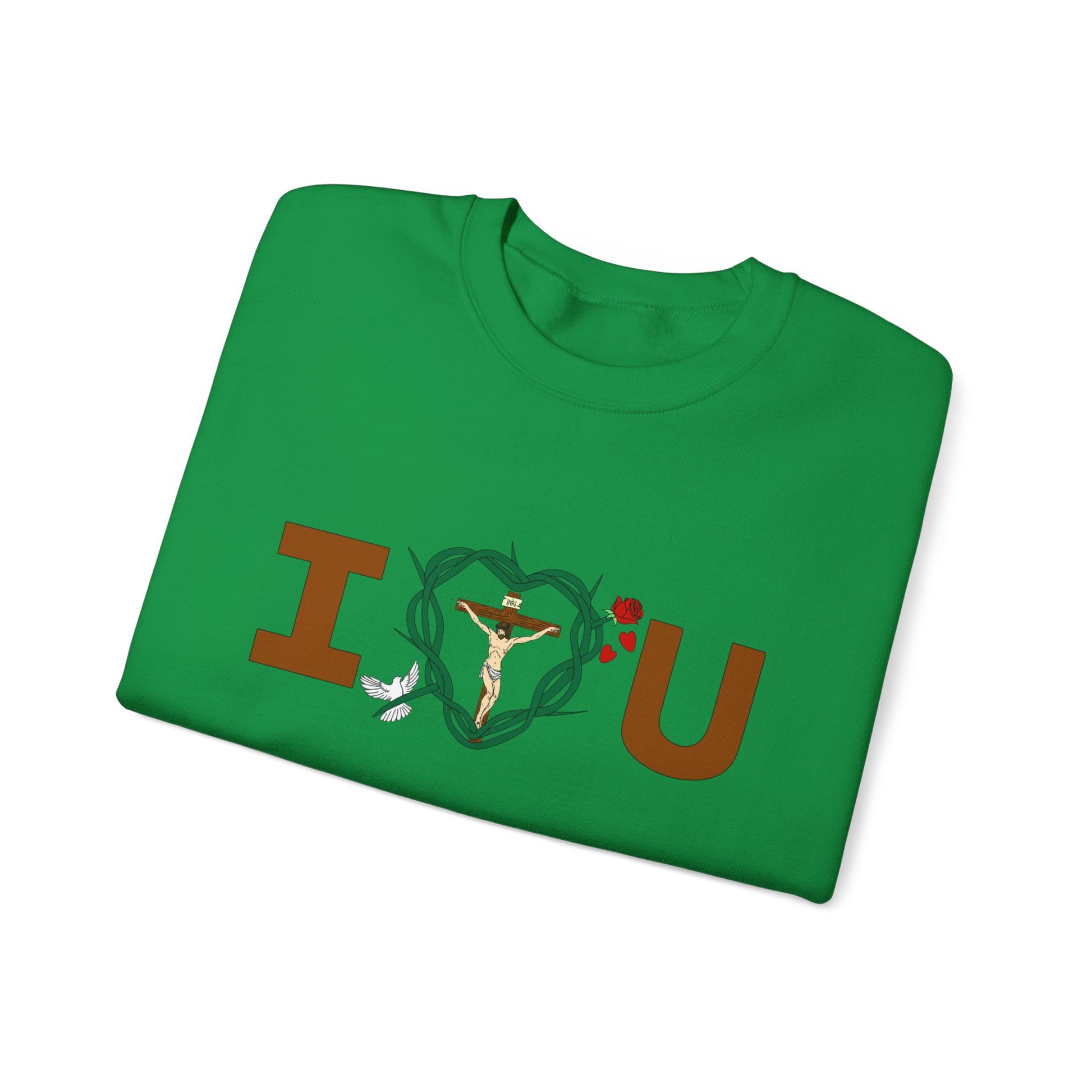 Embrace and feel loved and in sharing God's message of love for all in the warm and compfy sweatshirt. Let it be your lucky shirt.