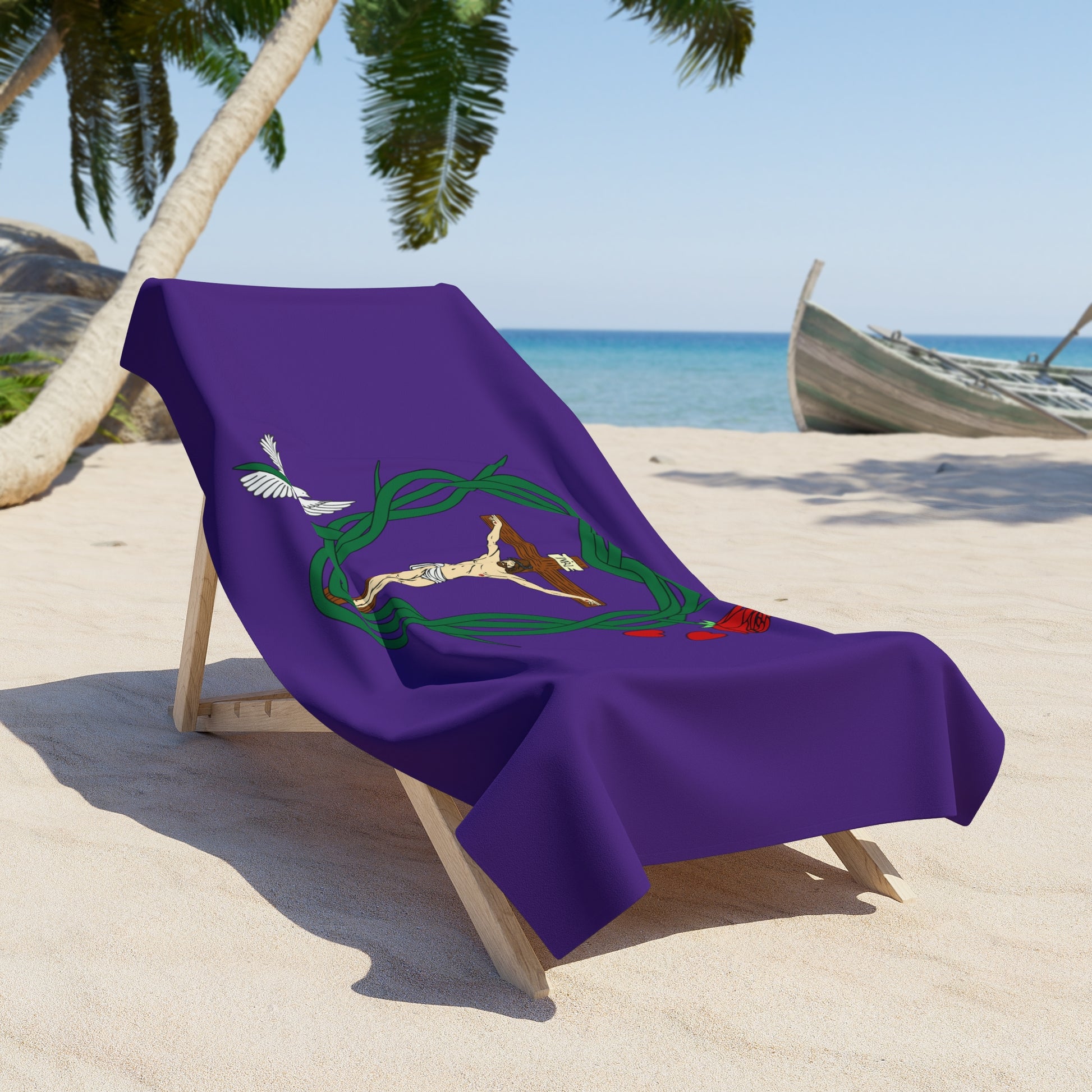 Make a fashion statement and stand out in a crowd when you use this towel at home or at the beach and feel loved and protected and remember you are shielded in Christ.