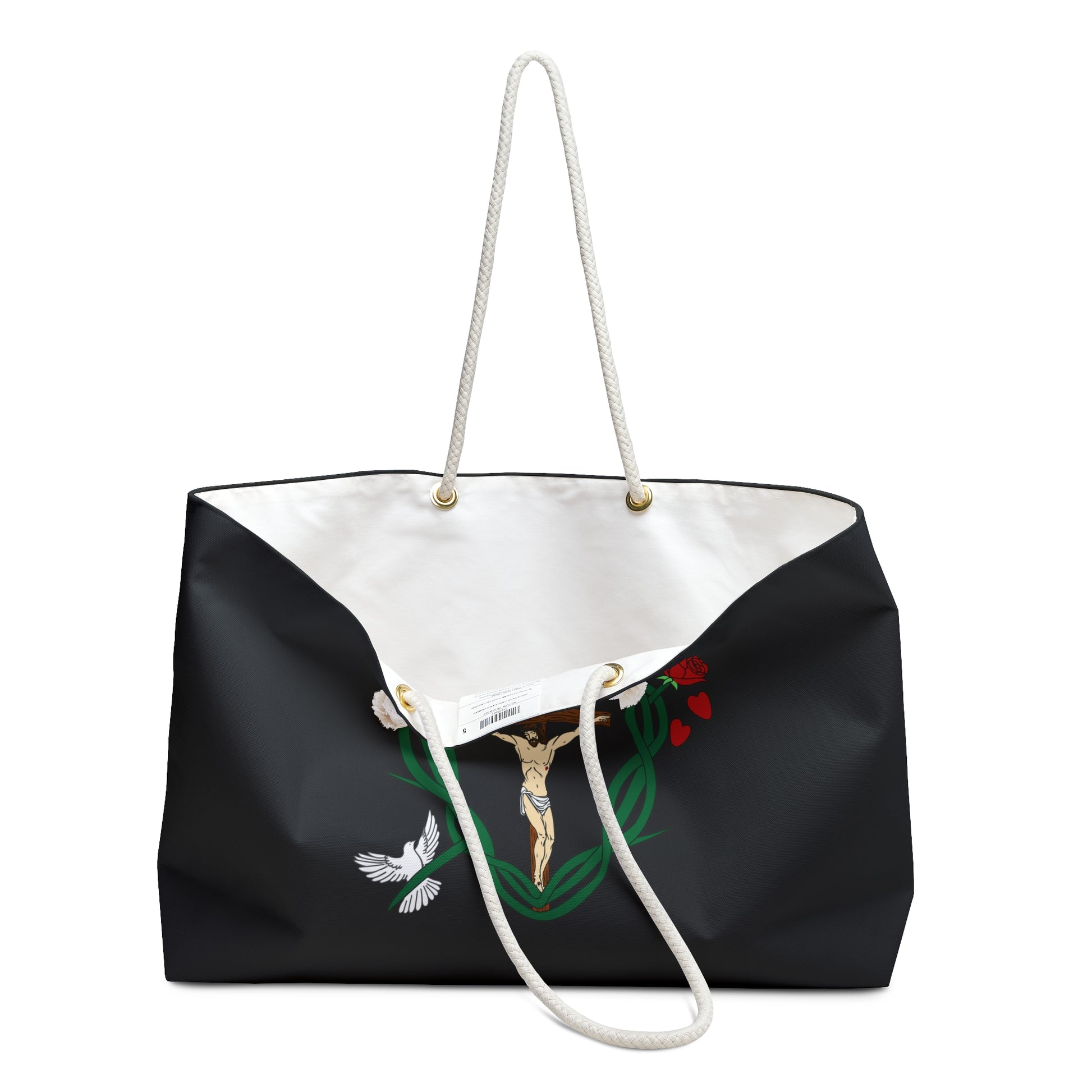 Make a fashion statement and stand out in a crowd while carry your personal belongings in this bag and remember that you are loved and protected in the Shield of Faith in Christ .