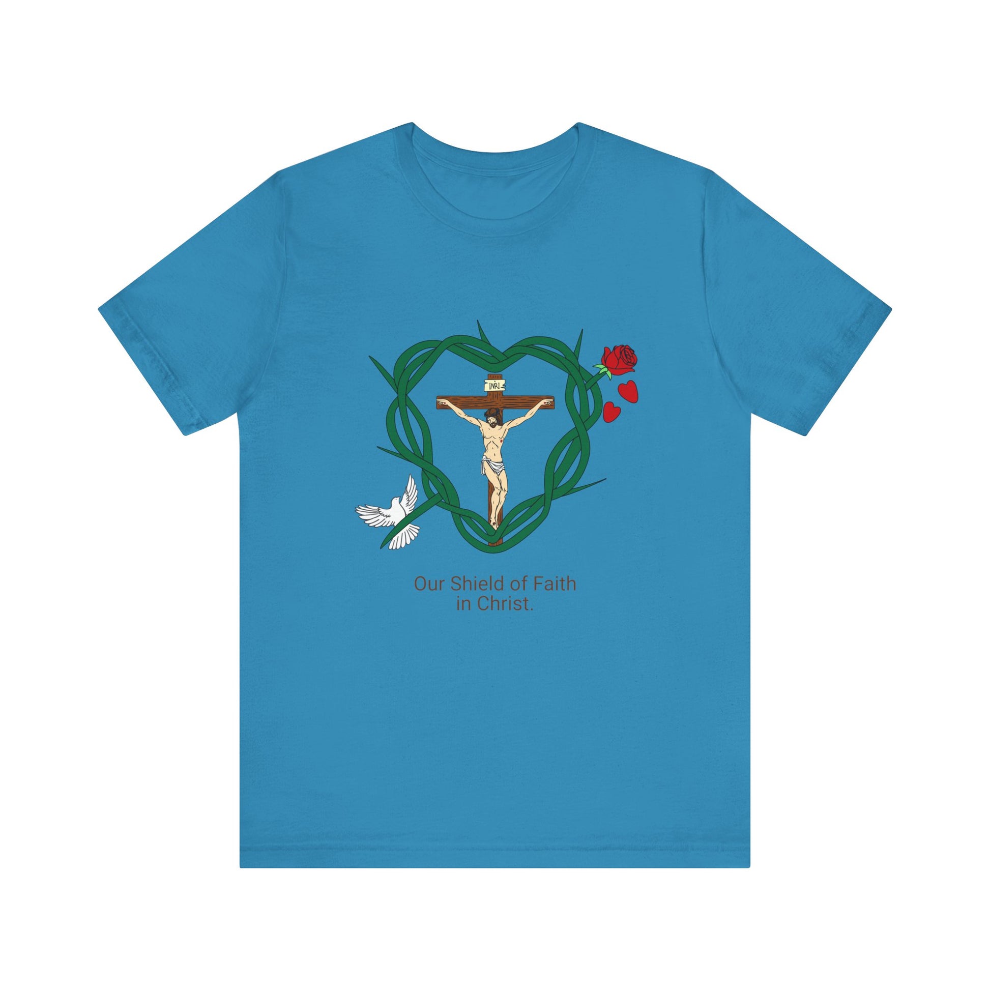 The Our Shield design represents the Shield of Faith in Christ and is the logo for the Team Spirit of God.