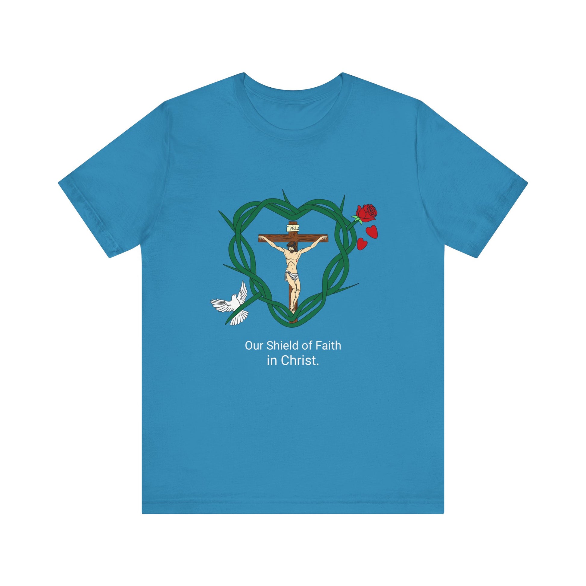 The Our Shield design represents the Shield of Faith in Christ and is the logo for the Team Spirit of God.